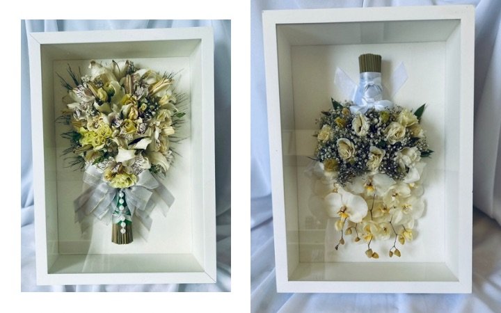 Atuamos em duas frentes, na eternização de buquês em 3D, transformando o buquê original da noiva em uma peça permanente, e atemporal, com técnicas de desidratação e preservação que mantêm a forma, o volume e a disposição das flores de forma artística. Cada eternização é feita de forma artesanal, com atenção aos detalhes, garantindo que o buquê permaneça como no dia do casamento por muitos anos. Por outro lado, criamos buquês de noiva com flores desidratadas e preservadas na paleta de. Ores da noiva. Produzimos buquês exclusivos, feitos sob medida, utilizando flores naturais desidratadas e preservadas com garantia de durabilidade, leveza e estética refinada. Esses buquês são ideais para noivas que buscam beleza, praticidade e um estilo que foge do convencional. Nosso compromisso é oferecer peças únicas, cuidadosamente elaboradas, que unem técnica, sensibilidade e qualidade para celebrar momentos especiais e torná-los permanentes.