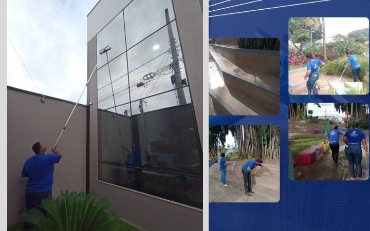Serviços de terceirização de faxinas, Limpeza de pisos, de vidros, limpezas residenciais, comerciais, prediais, indústrias, limpezas de fachadas, placa solares, caixa d’água, placas de ACM entre outros tipos de limpezas especializadas.