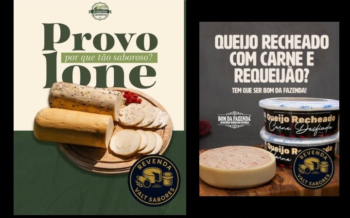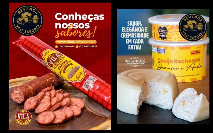 A Valt Sabores é uma empresa familiar, criada para levar até você produtos artesanais de alta qualidade, feitos com cuidado, autenticidade e o carinho que só quem coloca a família no centro de tudo consegue entregar. Nosso nome carrega essa essência: VALT une Vagner, Aline, Laís e Túlio, representando a união, dedicação e paixão que nos movem diariamente. Trabalhamos com uma linha completa de queijos frescos, recheados, maturados, chips artesanais, doces tradicionais, goiabadas, lombinhos, salaminhos e kits especiais que combinam sabor, textura e apresentação impecável. Cada produto é selecionado com rigor para proporcionar uma experiência gastronômica marcante, seja no dia a dia ou em momentos especiais. 📦 Nossos serviços e diferenciais: Atendemos consumidores finais, eventos, empórios, mercados e estabelecimentos que buscam produtos de excelência. Oferecemos um catálogo variado ideal para tábuas de frios, receitas, presentes e composições gourmet. Realizamos entregas em Sete Lagoas, Paraopeba e região, sempre com agilidade e cuidado. Atendimento direto e personalizado via WhatsApp e Instagram. Agendamos apresentações com degustação para parceiros comerciais que desejam conhecer e revender nossos produtos. A Valt Sabores é mais que uma empresa: é a união de uma família apaixonada por levar qualidade, tradição e sabor para a sua mesa.
